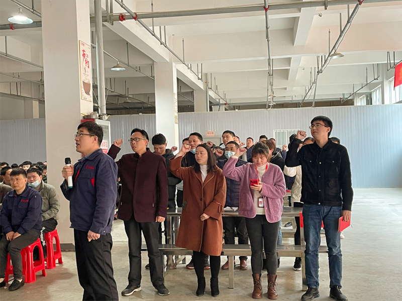 現(xiàn)場(chǎng)的員工、組長(zhǎng)、管理代表上臺(tái)進(jìn)行品質(zhì)保證宣誓: